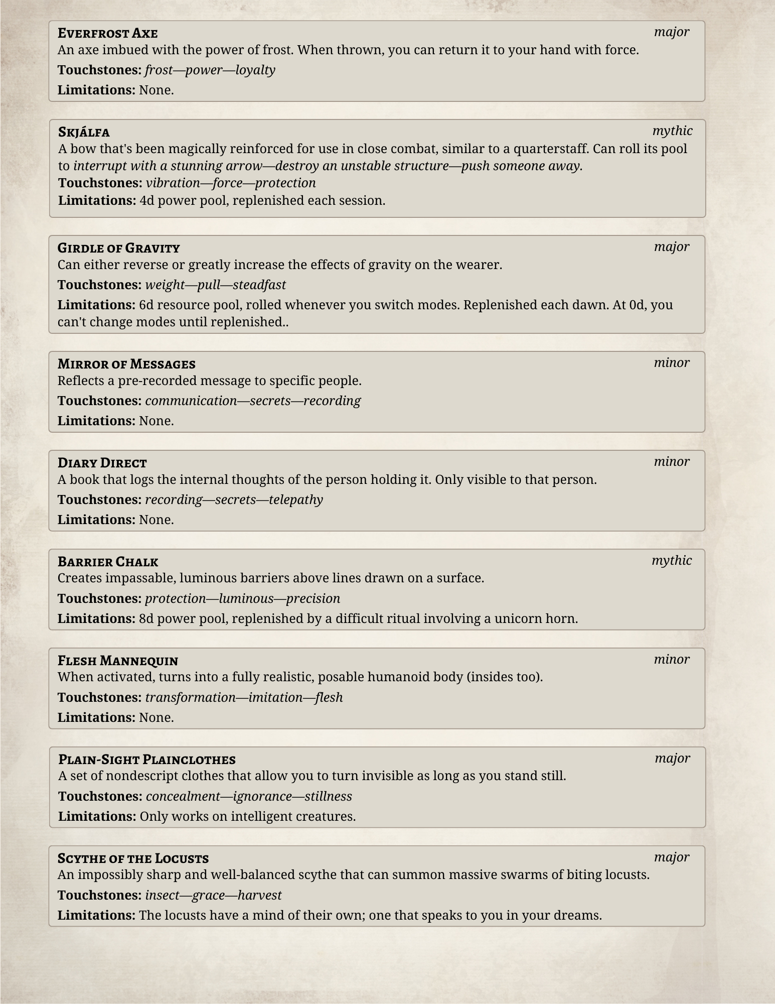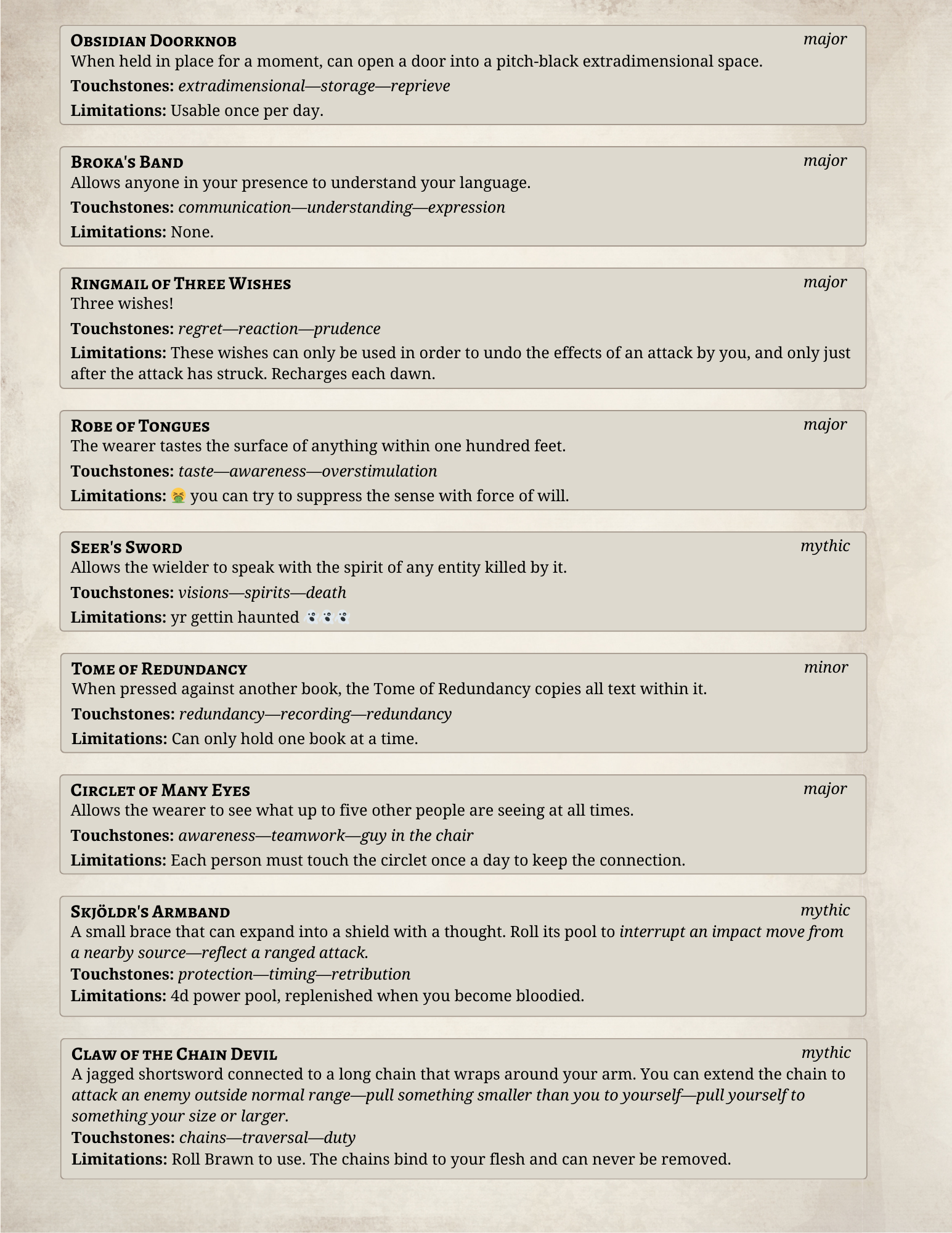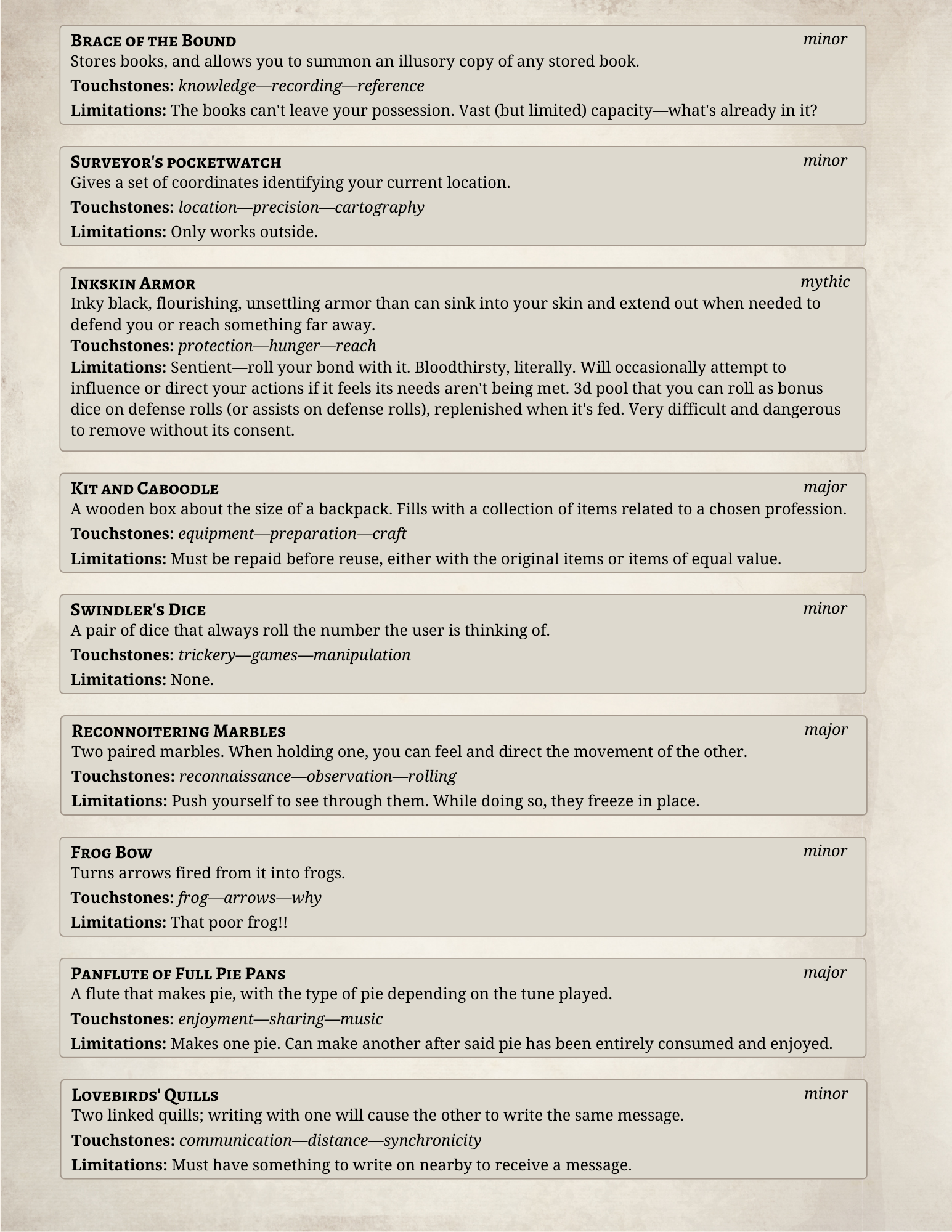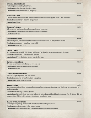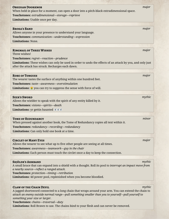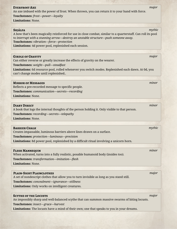 A set of arcana, or magic items, for the Grimwild RPG inspired by various media!